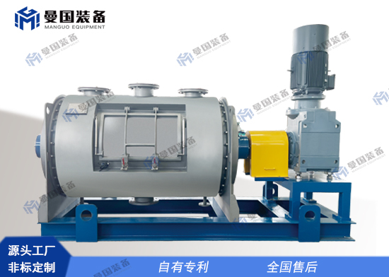 干燥機筒體設置夾套和保溫,當含一定水分的物料進入設備后,設備動部件運轉(zhuǎn)帶動主軸上安裝的多組錯位犁刀攪拌器以及筒體兩側(cè)板位置設置的旋轉(zhuǎn)刮板運轉(zhuǎn),使筒內(nèi)物料產(chǎn)生不間斷漩渦離心力,不斷重疊翻轉(zhuǎn),同時在結構上避免攪拌死角問題。查看更多 + -